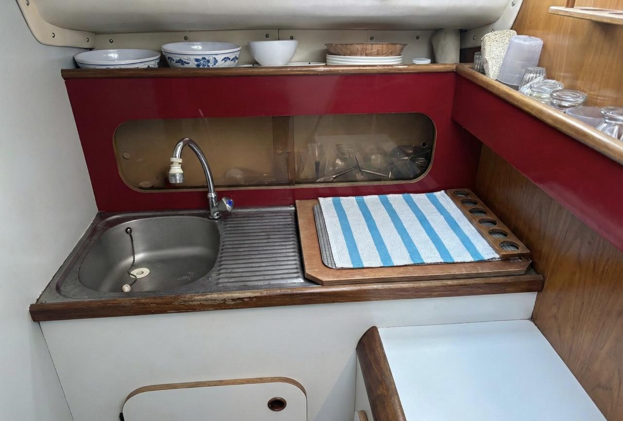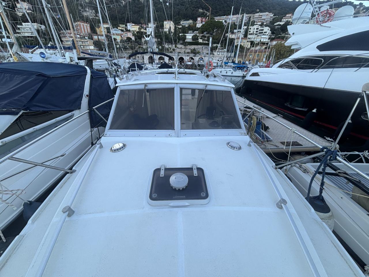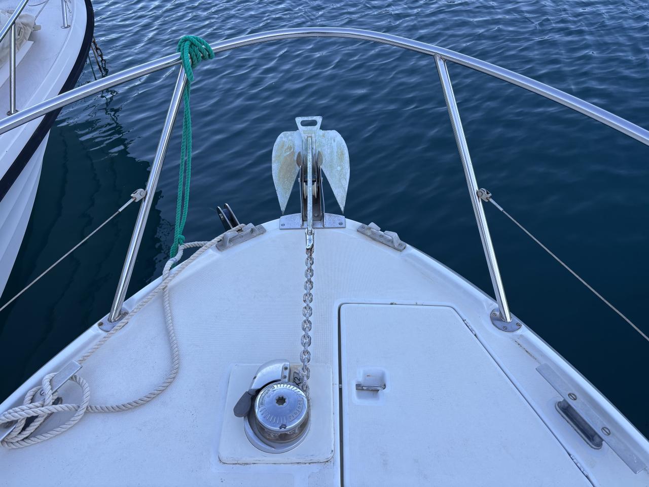 On board, you will find a comfortable cabin, an electric toilet, a cooker, a depth sounder, a bow thruster for easy maneuvering, and an electric windlass.
