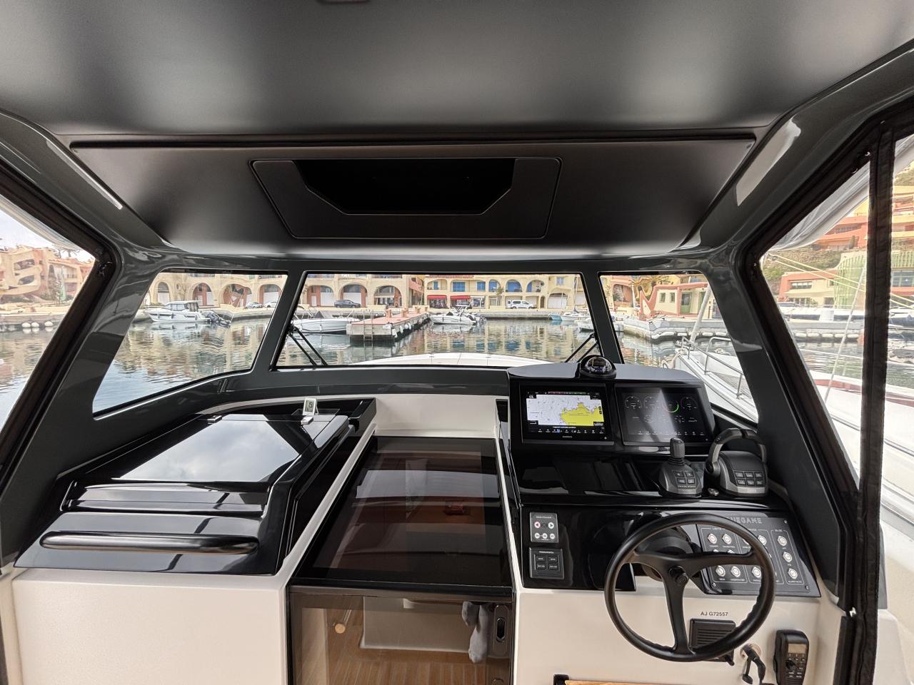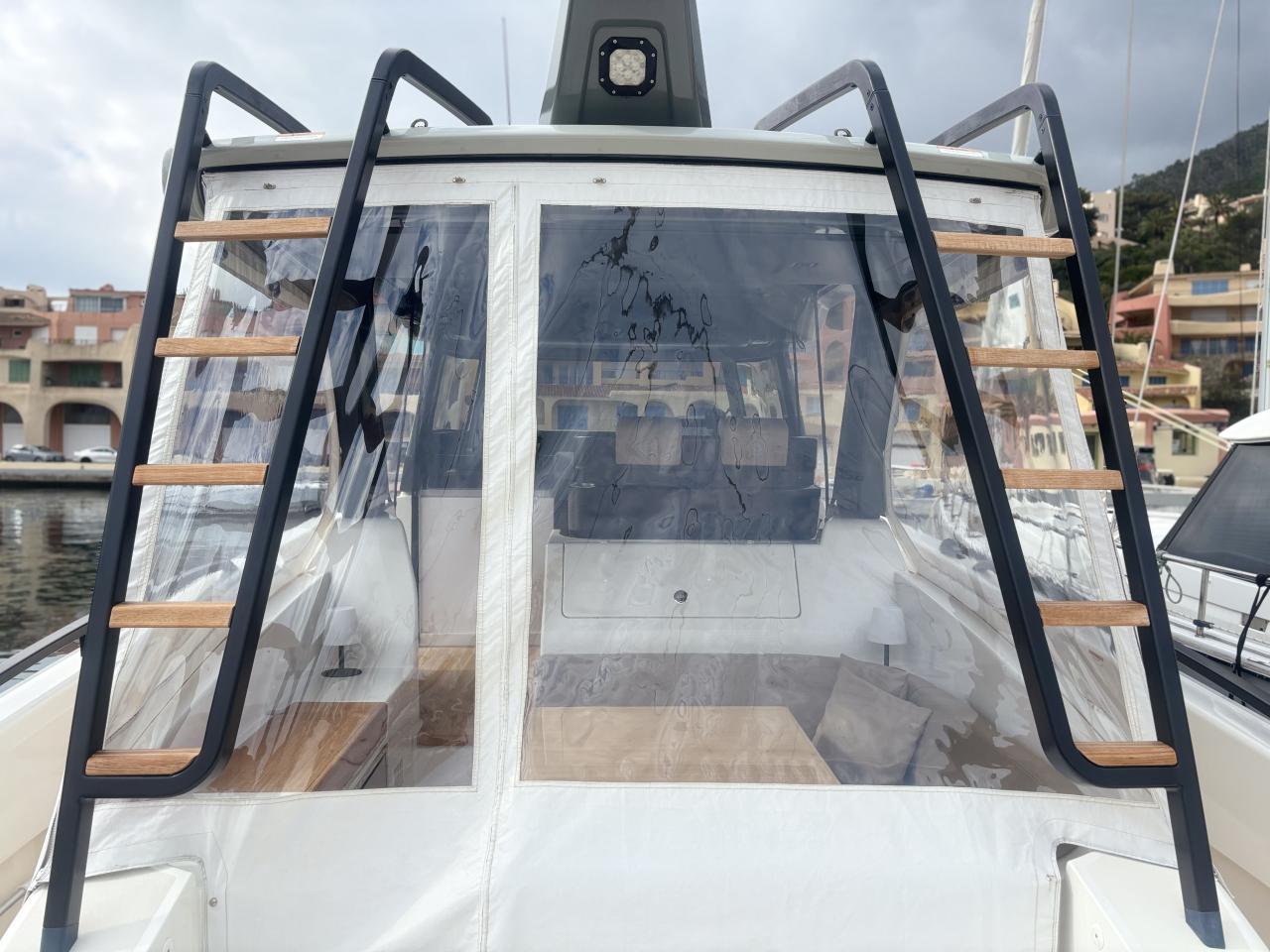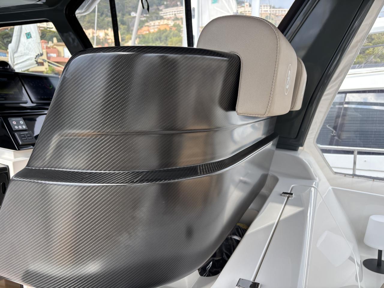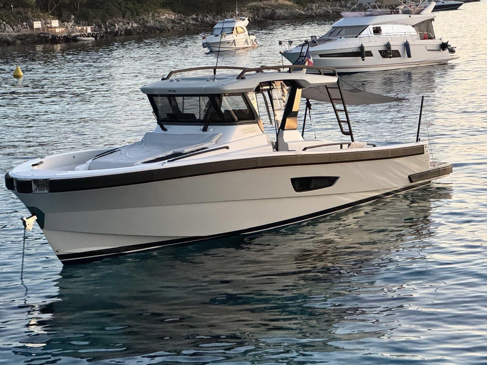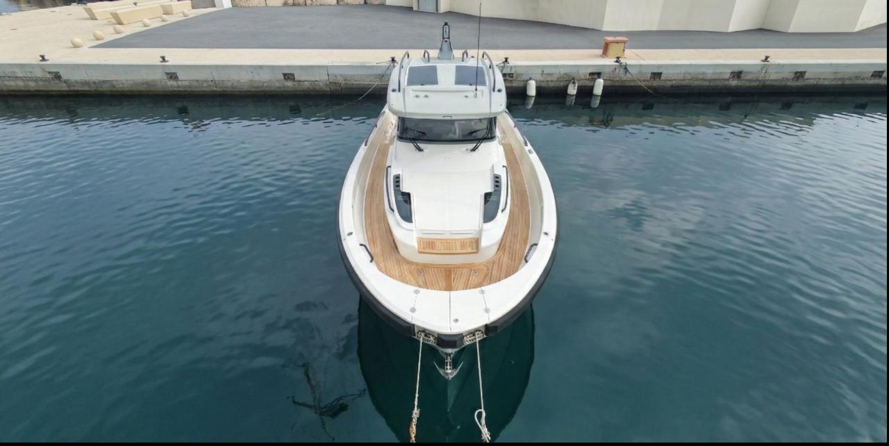 CAP MED is proud to present this outstanding 2021 Bluegame BG42, a premium unit from the Italian Bluegame shipyard (Sanlorenzo Group), designed by Zuccon International Project. A true benchmark in the luxury open yacht segment, the BG42 stands out with its innovative 360° walkaround layout, protected cockpit and exceptional exterior volumes, delivering remarkable comfort both in the Mediterranean and coastal cruising conditions (CE Category B). Powered by 2 x Volvo Penta D6 IPS 650 engines producing 480 HP each and showing only 130 engine hours, this yacht combines strong performance, efficiency and impressive stability. The IPS pod drives paired with the Volvo joystick system provide extremely precise and effortless docking, further enhanced by a Side Power 75 bow thruster for total maneuvering control. The Interceptor trim system automatically optimizes running attitude and improves dynamic comfort at sea. Engines are serviced every two years and benefit from a recent software update. Energy autonomy is a major highlight, centered around a 7 kW onboard generator delivering independent 220V power at anchor or underway, allowing simultaneous use of air conditioning BTU 16000, refrigeration and onboard systems without reliance on shore power. The system is reinforced by 2 x 220W solar panels (2024), a Victron SmartSolar Bluetooth controller, Victron Bluetooth shunt, and a Victron Skylla 24V 80A three-output charger (2025), ensuring optimal energy management and secure battery charging. A 130L/h Idromar watermaker (2025) provides full freshwater autonomy for extended cruising. The new Dometic power management unit (2025) automatically supplies the three refrigerators in either 220V or 24V depending on the available power source, complemented by a Frigonautica stainless-steel outdoor freezer (2024). The deck is fully optimized for outdoor living with a hydraulic gangway and submersible bathing platform controlled via stainless Opacmare panels (2025), full Crystal cockpit enclosure (2024) with side sunshade panels, a 5 kW Webasto exterior heating system for all-season comfort, wireless Lewmar chain counter remote for safe anchoring, and electric winches both forward and aft for effortless mooring operations. The interior, redesigned by Studio Souchon — the same design firm collaborating with Sanlorenzo — offers a refined atmosphere with premium finishes, an electric adjustable saloon table, adaptive lighting, and a master cabin layout engineered to reduce rolling sensation thanks to its orientation, featuring elegant Alcantara details. Meticulously maintained and turnkey, this Bluegame BG42 is configured for extended cruising with enhanced autonomy and a level of equipment rarely found on the market.