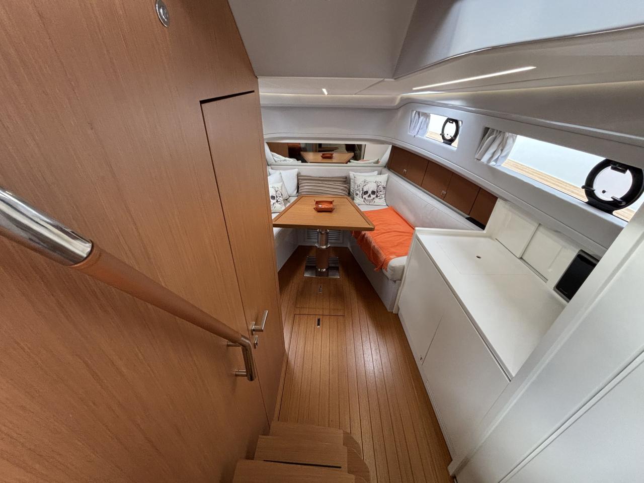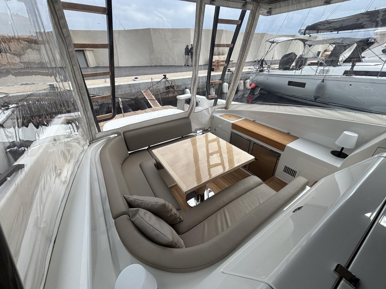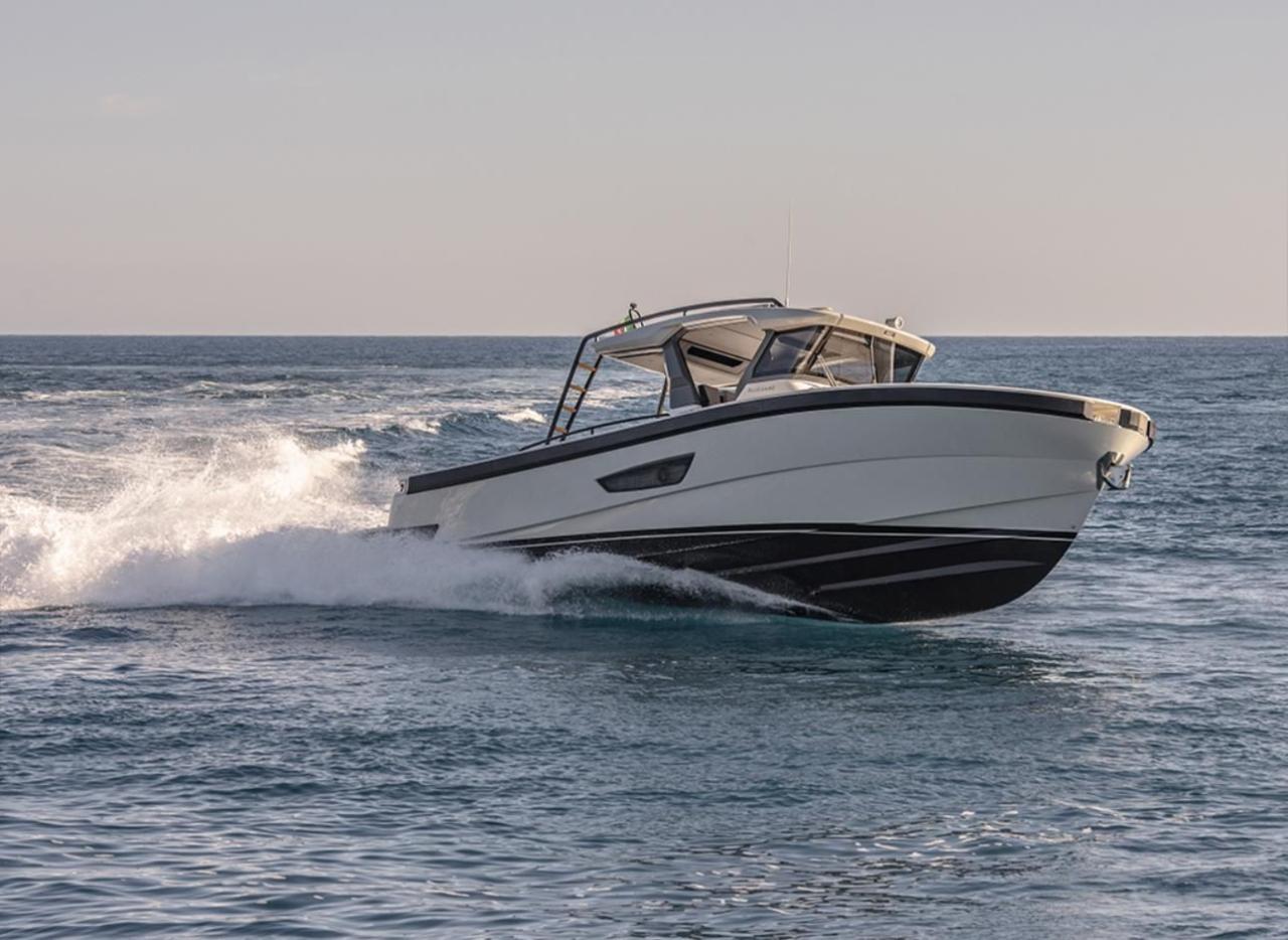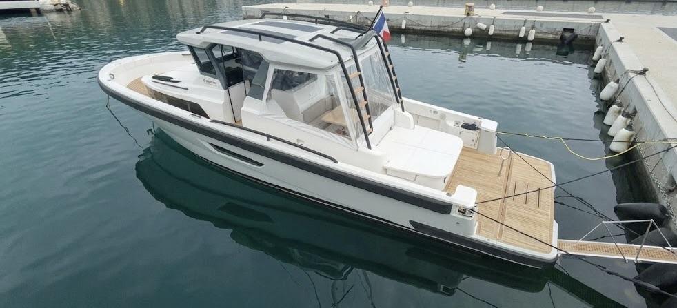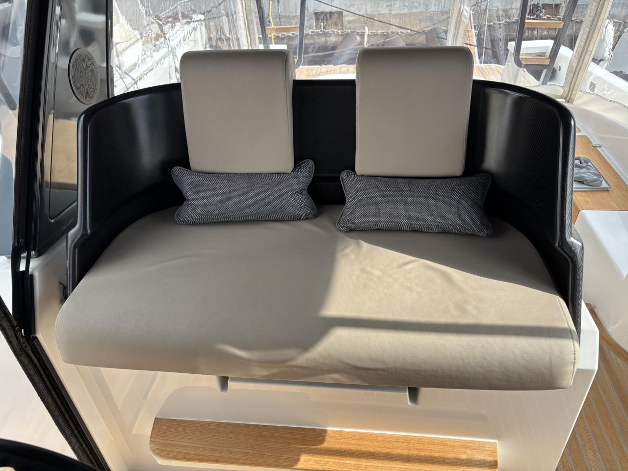 CAP MED is proud to present this outstanding 2021 Bluegame BG42, a premium unit from the Italian Bluegame shipyard (Sanlorenzo Group), designed by Zuccon International Project. A true benchmark in the luxury open yacht segment, the BG42 stands out with its innovative 360° walkaround layout, protected cockpit and exceptional exterior volumes, delivering remarkable comfort both in the Mediterranean and coastal cruising conditions (CE Category B). Powered by 2 x Volvo Penta D6 IPS 650 engines producing 480 HP each and showing only 130 engine hours, this yacht combines strong performance, efficiency and impressive stability. The IPS pod drives paired with the Volvo joystick system provide extremely precise and effortless docking, further enhanced by a Side Power 75 bow thruster for total maneuvering control. The Interceptor trim system automatically optimizes running attitude and improves dynamic comfort at sea. Engines are serviced every two years and benefit from a recent software update. Energy autonomy is a major highlight, centered around a 7 kW onboard generator delivering independent 220V power at anchor or underway, allowing simultaneous use of air conditioning BTU 16000, refrigeration and onboard systems without reliance on shore power. The system is reinforced by 2 x 220W solar panels (2024), a Victron SmartSolar Bluetooth controller, Victron Bluetooth shunt, and a Victron Skylla 24V 80A three-output charger (2025), ensuring optimal energy management and secure battery charging. A 130L/h Idromar watermaker (2025) provides full freshwater autonomy for extended cruising. The new Dometic power management unit (2025) automatically supplies the three refrigerators in either 220V or 24V depending on the available power source, complemented by a Frigonautica stainless-steel outdoor freezer (2024). The deck is fully optimized for outdoor living with a hydraulic gangway and submersible bathing platform controlled via stainless Opacmare panels (2025), full Crystal cockpit enclosure (2024) with side sunshade panels, a 5 kW Webasto exterior heating system for all-season comfort, wireless Lewmar chain counter remote for safe anchoring, and electric winches both forward and aft for effortless mooring operations. The interior, redesigned by Studio Souchon — the same design firm collaborating with Sanlorenzo — offers a refined atmosphere with premium finishes, an electric adjustable saloon table, adaptive lighting, and a master cabin layout engineered to reduce rolling sensation thanks to its orientation, featuring elegant Alcantara details. Meticulously maintained and turnkey, this Bluegame BG42 is configured for extended cruising with enhanced autonomy and a level of equipment rarely found on the market.