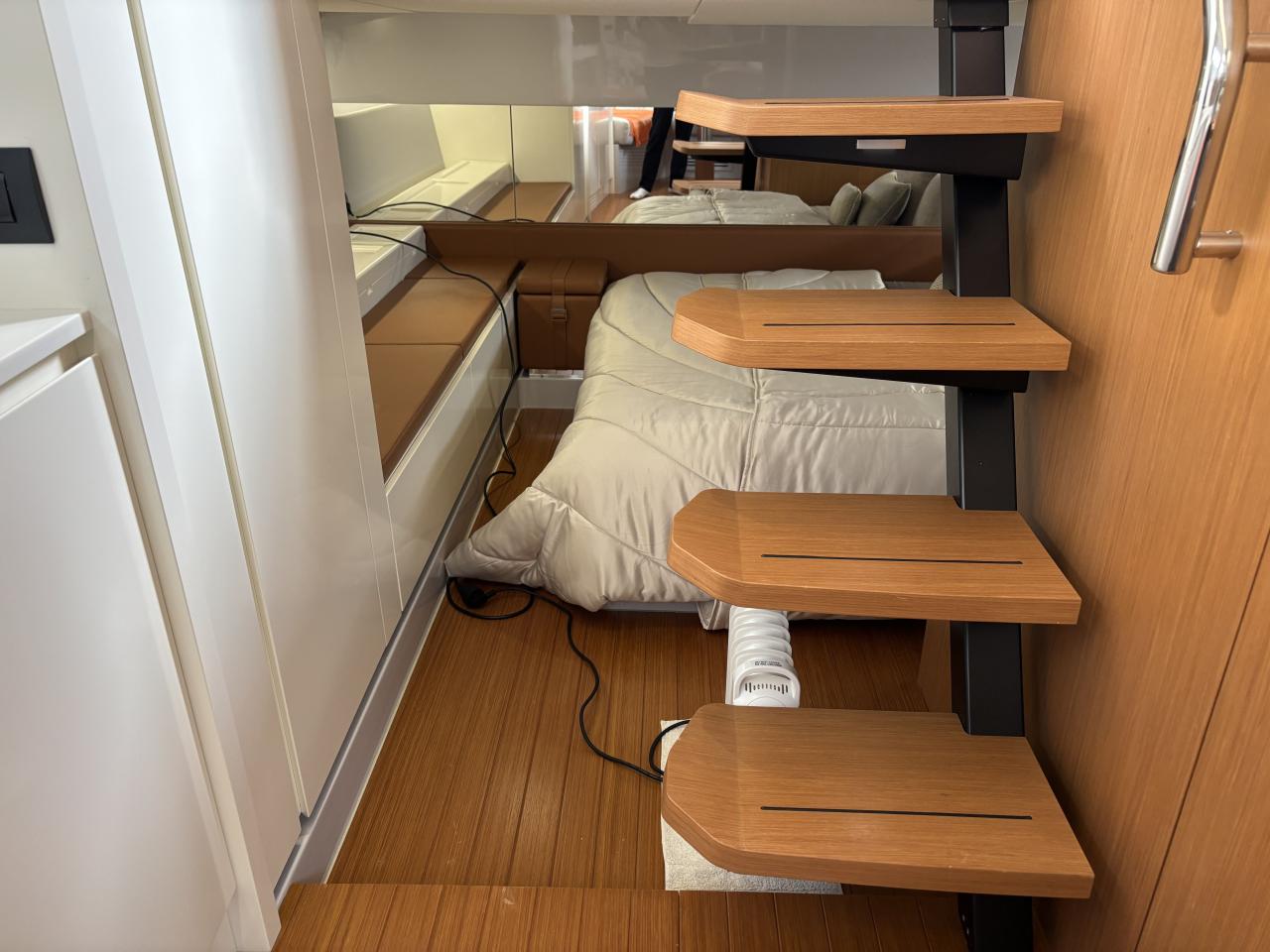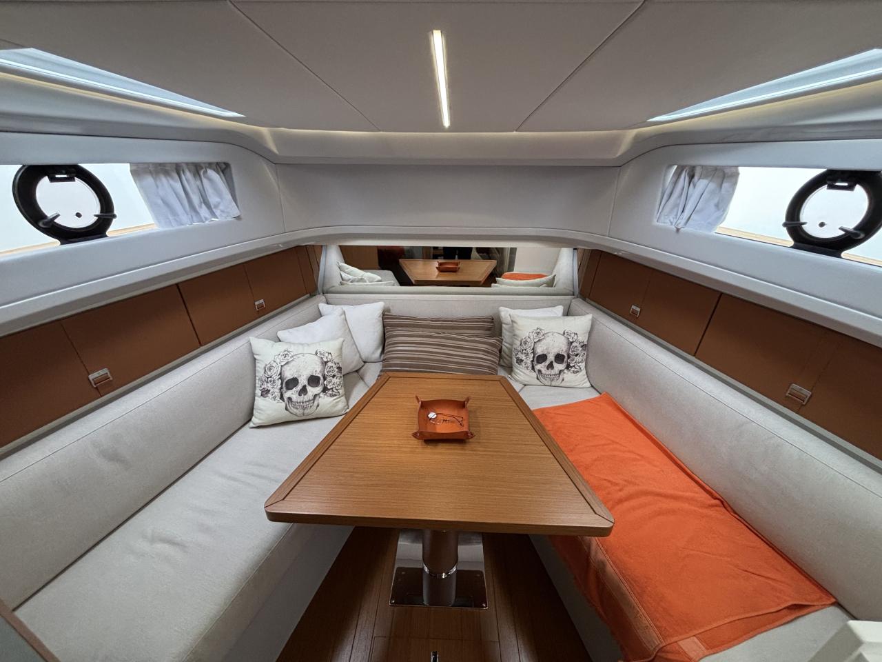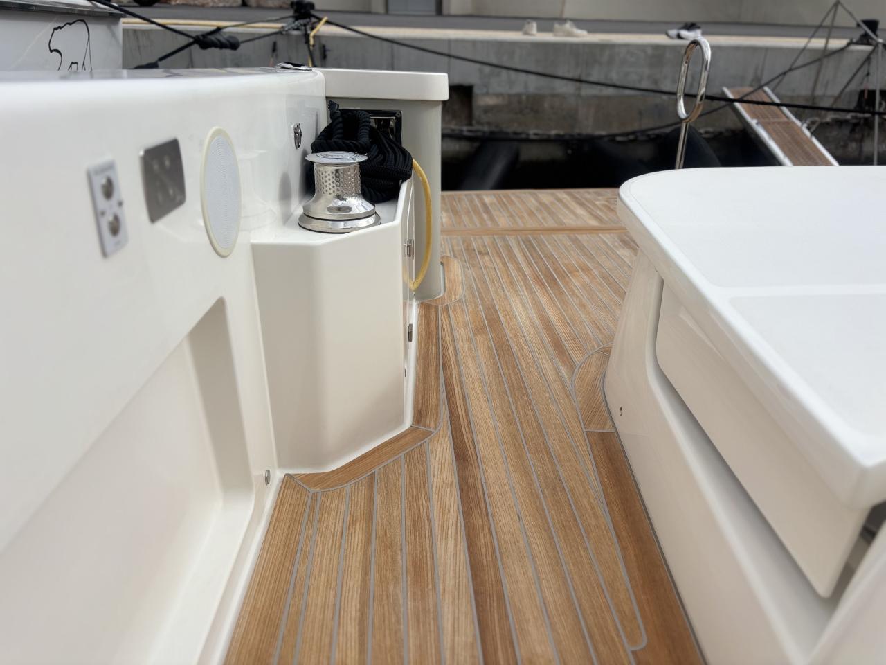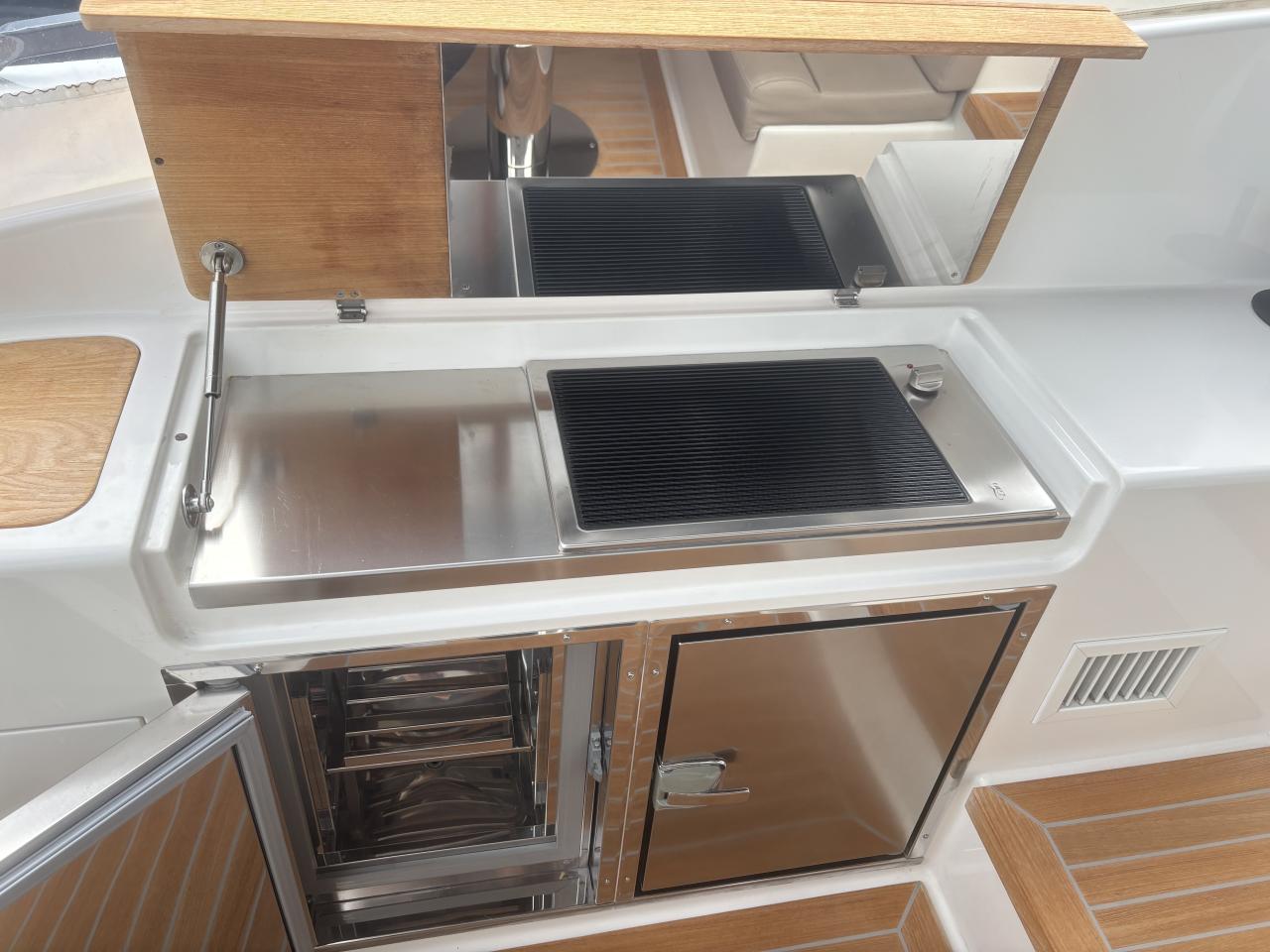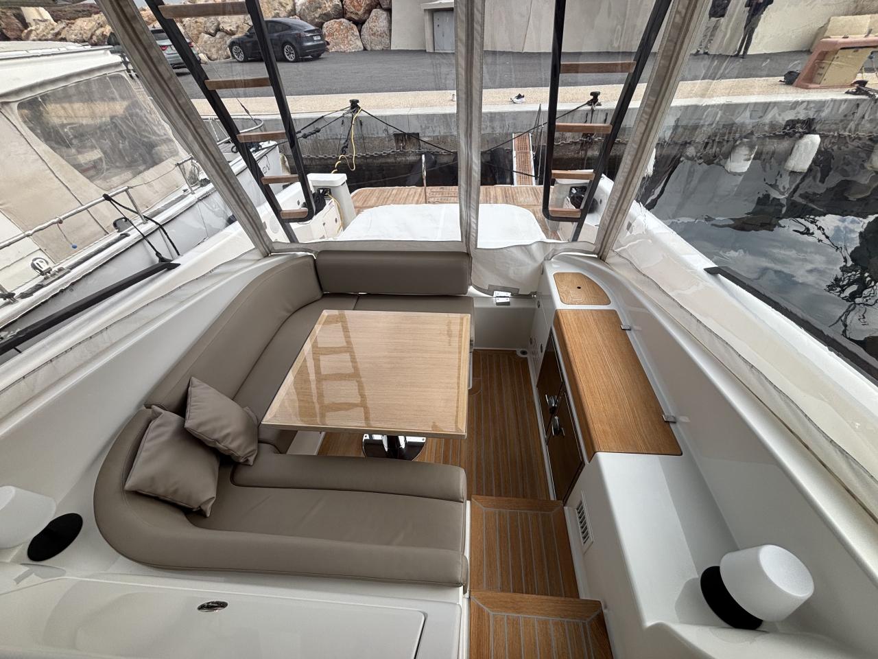 CAP MED is proud to present this outstanding 2021 Bluegame BG42, a premium unit from the Italian Bluegame shipyard (Sanlorenzo Group), designed by Zuccon International Project. A true benchmark in the luxury open yacht segment, the BG42 stands out with its innovative 360° walkaround layout, protected cockpit and exceptional exterior volumes, delivering remarkable comfort both in the Mediterranean and coastal cruising conditions (CE Category B). Powered by 2 x Volvo Penta D6 IPS 650 engines producing 480 HP each and showing only 130 engine hours, this yacht combines strong performance, efficiency and impressive stability. The IPS pod drives paired with the Volvo joystick system provide extremely precise and effortless docking, further enhanced by a Side Power 75 bow thruster for total maneuvering control. The Interceptor trim system automatically optimizes running attitude and improves dynamic comfort at sea. Engines are serviced every two years and benefit from a recent software update. Energy autonomy is a major highlight, centered around a 7 kW onboard generator delivering independent 220V power at anchor or underway, allowing simultaneous use of air conditioning BTU 16000, refrigeration and onboard systems without reliance on shore power. The system is reinforced by 2 x 220W solar panels (2024), a Victron SmartSolar Bluetooth controller, Victron Bluetooth shunt, and a Victron Skylla 24V 80A three-output charger (2025), ensuring optimal energy management and secure battery charging. A 130L/h Idromar watermaker (2025) provides full freshwater autonomy for extended cruising. The new Dometic power management unit (2025) automatically supplies the three refrigerators in either 220V or 24V depending on the available power source, complemented by a Frigonautica stainless-steel outdoor freezer (2024). The deck is fully optimized for outdoor living with a hydraulic gangway and submersible bathing platform controlled via stainless Opacmare panels (2025), full Crystal cockpit enclosure (2024) with side sunshade panels, a 5 kW Webasto exterior heating system for all-season comfort, wireless Lewmar chain counter remote for safe anchoring, and electric winches both forward and aft for effortless mooring operations. The interior, redesigned by Studio Souchon — the same design firm collaborating with Sanlorenzo — offers a refined atmosphere with premium finishes, an electric adjustable saloon table, adaptive lighting, and a master cabin layout engineered to reduce rolling sensation thanks to its orientation, featuring elegant Alcantara details. Meticulously maintained and turnkey, this Bluegame BG42 is configured for extended cruising with enhanced autonomy and a level of equipment rarely found on the market.
