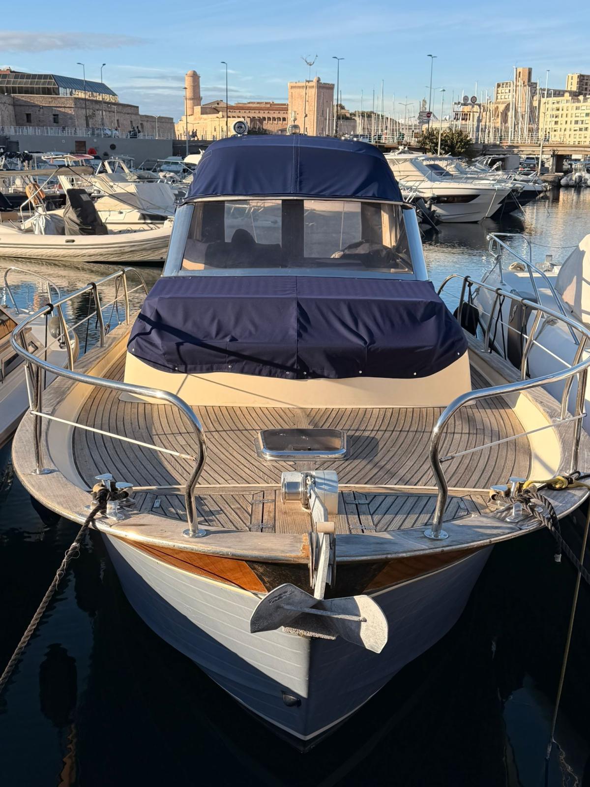 2008 Libeccio 27 in very good overall condition, carefully maintained with many recent upgrades including new teak deck, new batteries, new bimini and full mechanical servicing. Powered by twin Nanni Toyota 200 HP engines with only 270 hours. Ideal for day cruising, fishing or coastal trips. Visible in Marseille Old Port CNTL.