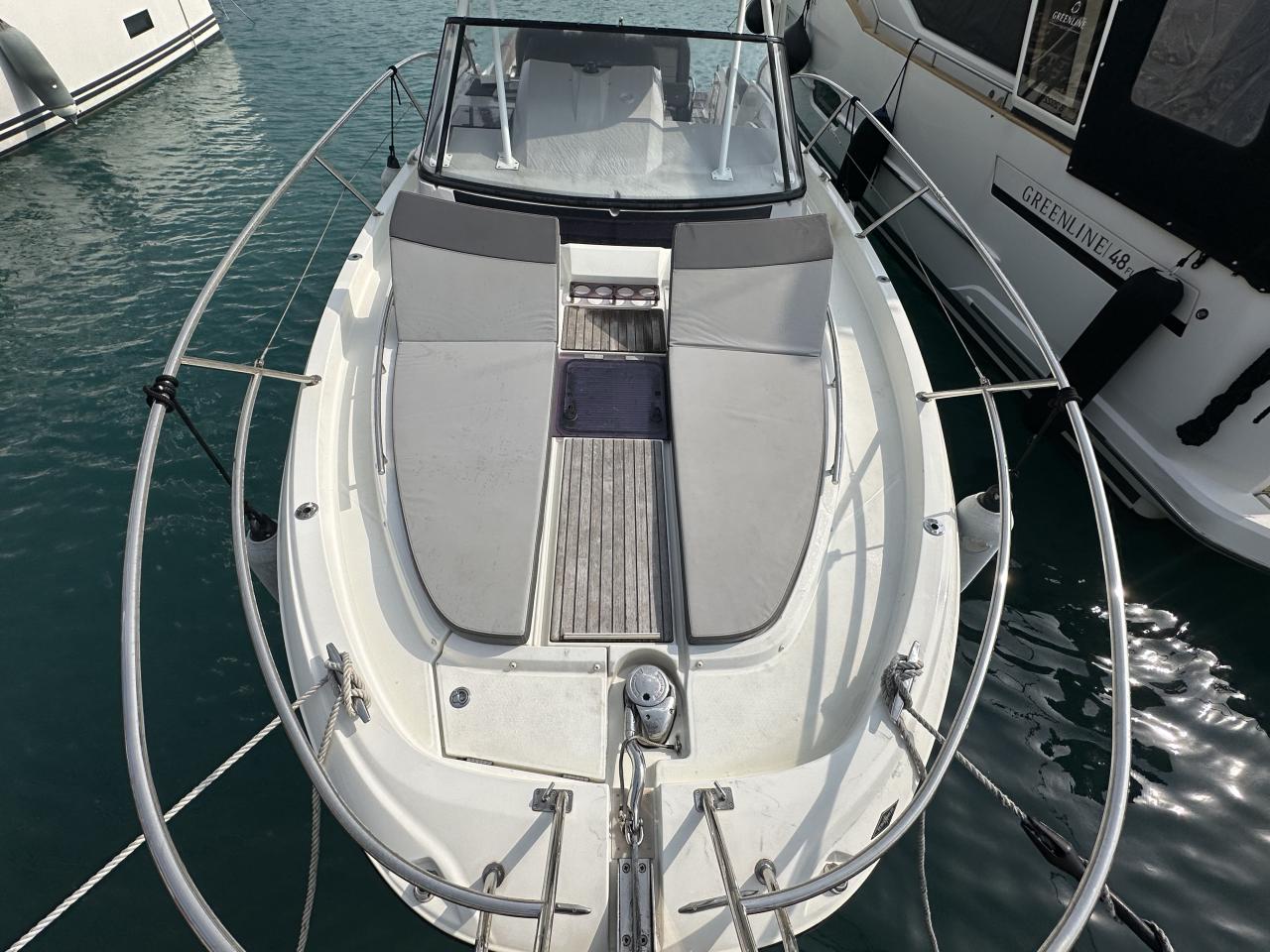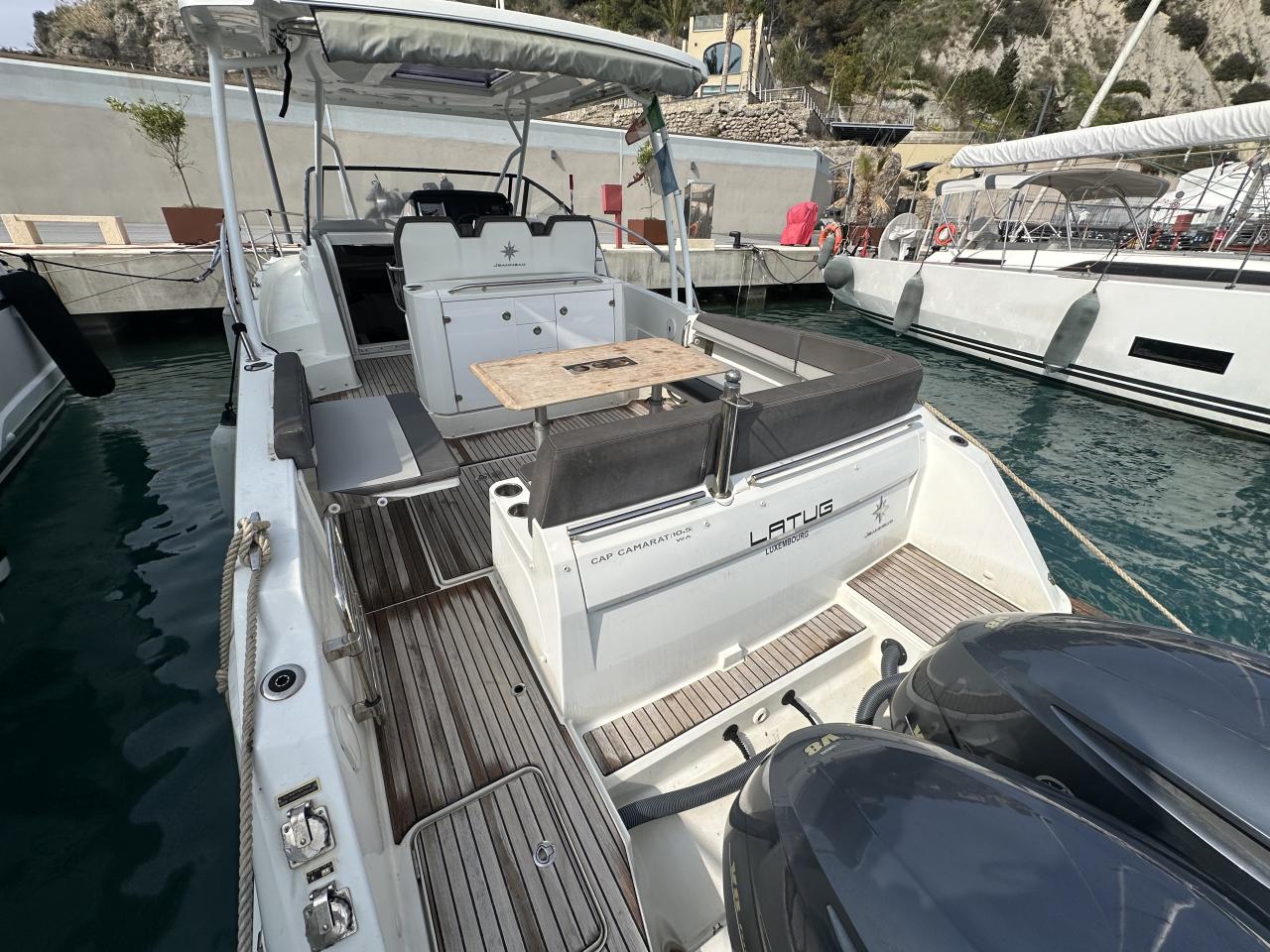 Stunning Jeanneau Cap Camarat 10.50 WA built in 2020, one of the most sought-after walkaround models in her category, combining sporty performance, offshore capability and true cruising comfort. Powered by twin Mercury Verado 350 HP V6 outboard engines delivering a total of 700 horsepower, this unit offers exceptional acceleration, impressive top-end performance and smooth, controlled navigation. With 250 engine hours, she presents a balanced usage profile and remains in very good overall condition.