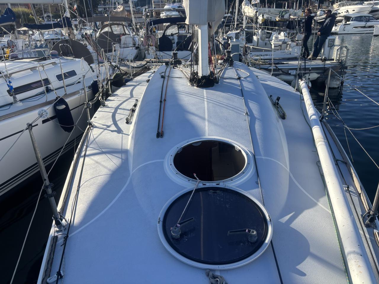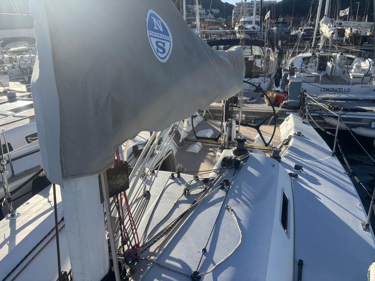 36 OD sailing yacht from 2003 optimized for racing and fast cruising, featuring Pauger carbon mast and boom, recent Dyneema rigging and full deck equipment including Harken winches, carbon bowsprit and spinnaker pole.