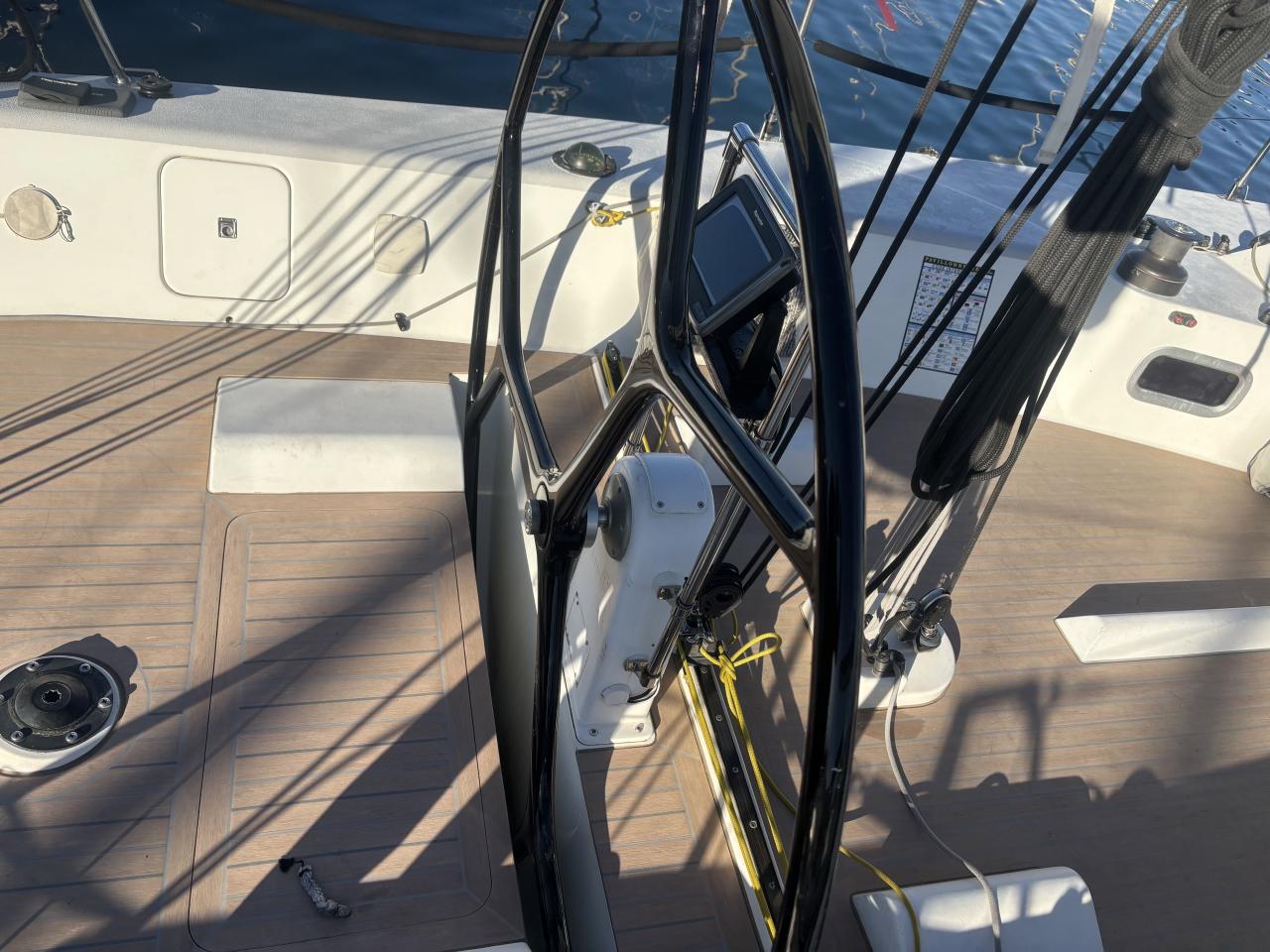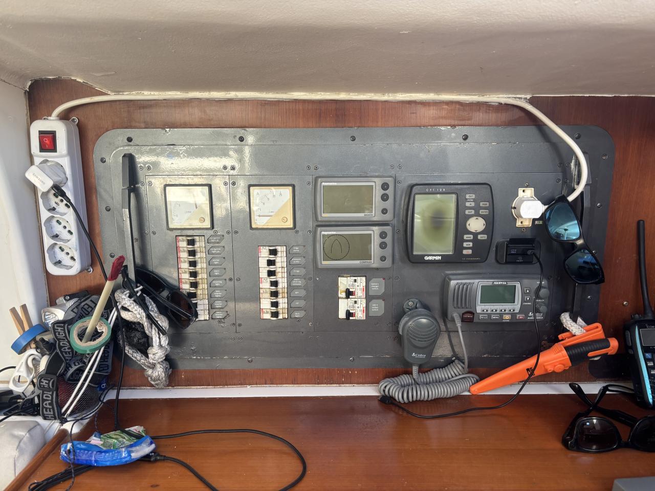 Equipped with full Raymarine electronics (GPS, ST7000 autopilot, log, depth, wind) and fixed + handheld VHF.