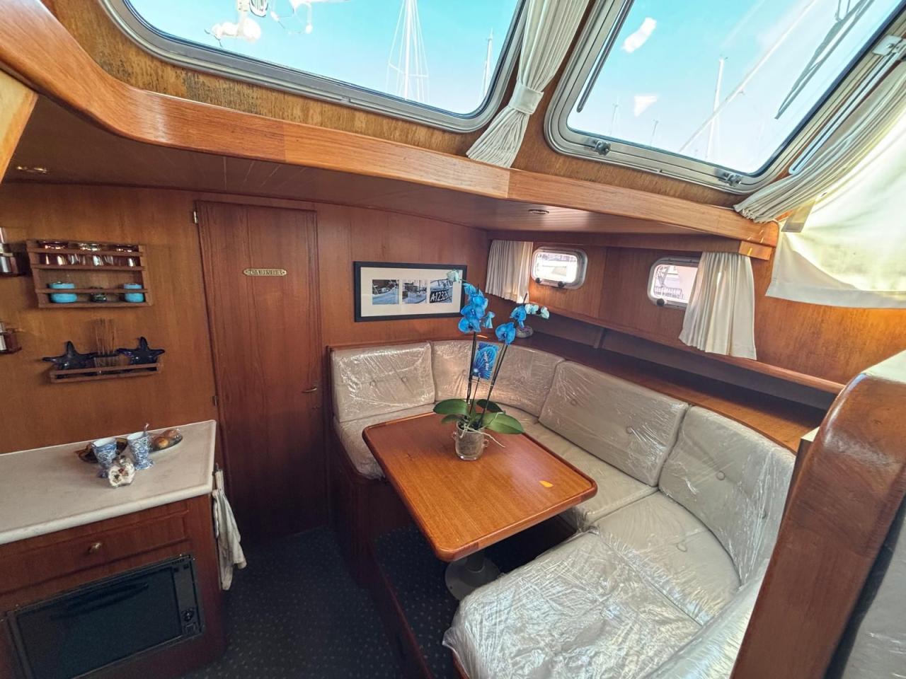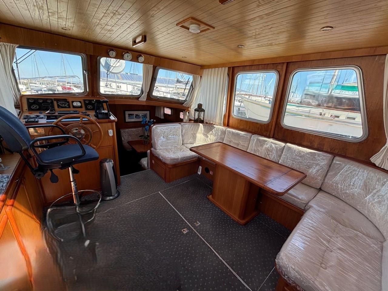 Magnifique Aquanaut Drifter 1250 AK de 2001, idéal pour croisière fluviale et maritime. Équipé de 2 moteurs Volvo 150cv, fiables et entretenus, ce yacht à moteur en acier offre sécurité et confort. Intérieur spacieux et lumineux, avec sellerie neuve, boiseries en très bonne état et nombreux rangements. Deux cabines confortables avec espaces de stockage, ainsi qu’une cuisine entièrement équipée. Extérieur généreux avec pont en teck en bon état, taud de cockpit et bimini. Bateau en autonomie complète grâce à son groupe électrogène et convertisseur. Équipement électronique complet, 2 postes de pilotages, mât facilement abaissable pour passages sous ponts. Un bateau prêt à naviguer, idéal pour voyager en toute sérénité.