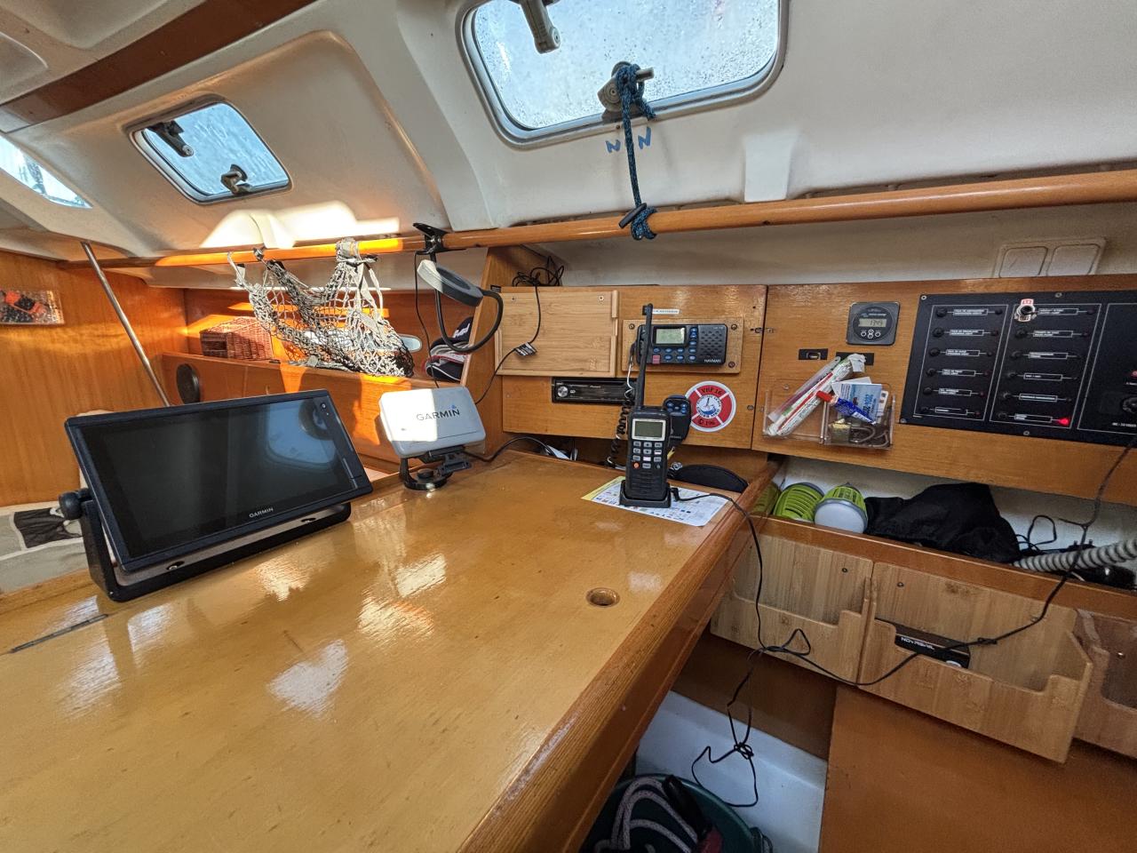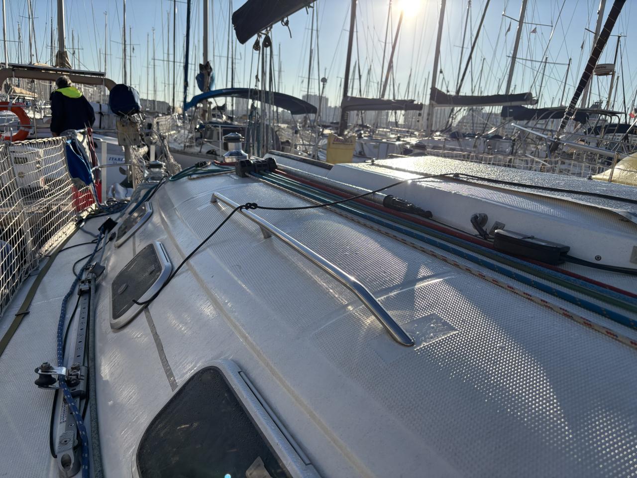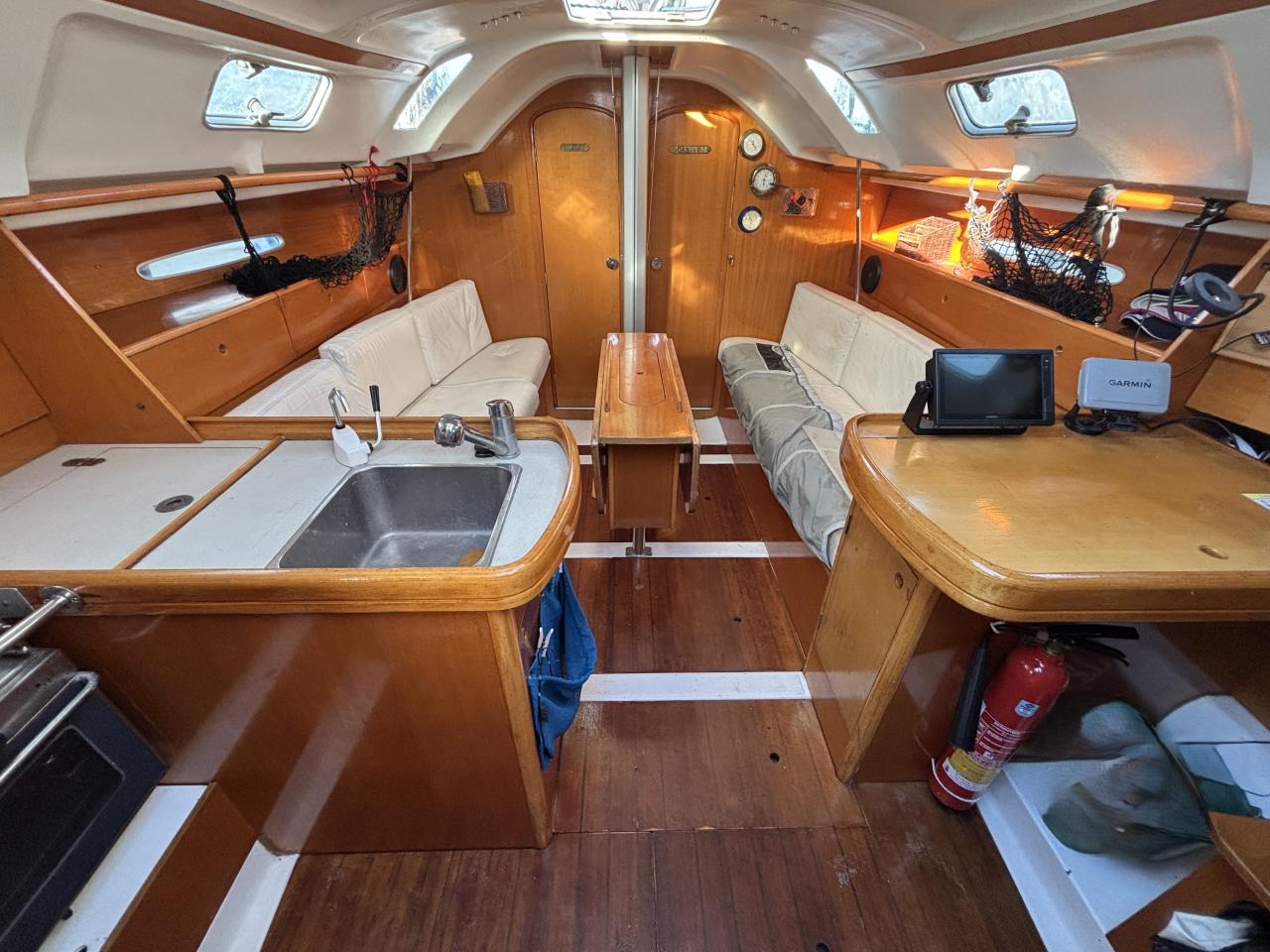 Alliant régate et croisière, ce First 33.7 est équipé de plusieurs voiles tel qu'une grande voile full batten, génois, spi symétrique... avec tout l'équipement électronique nécessaire tel que GPS, pilote automatique ...pour une navigation confortable.