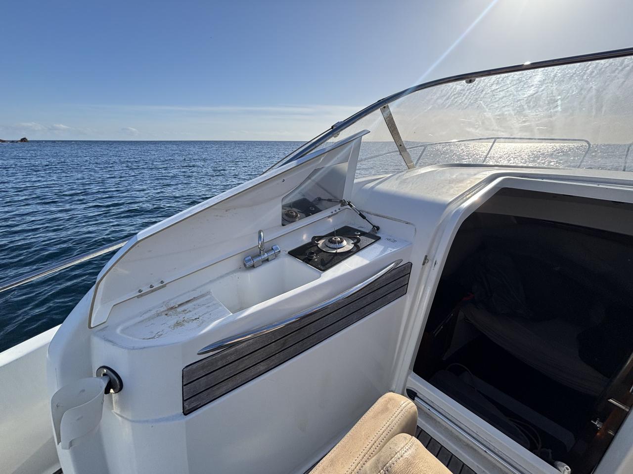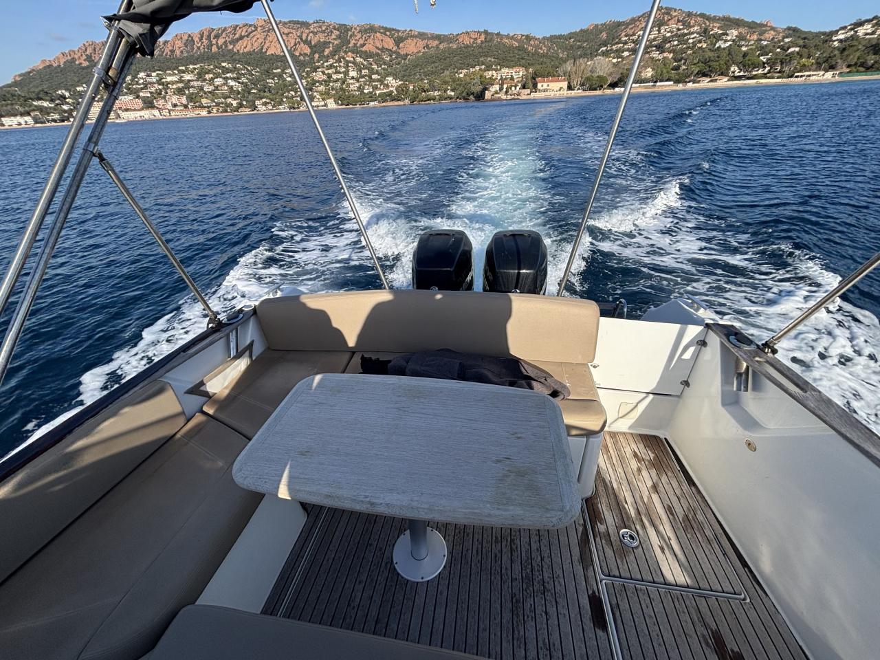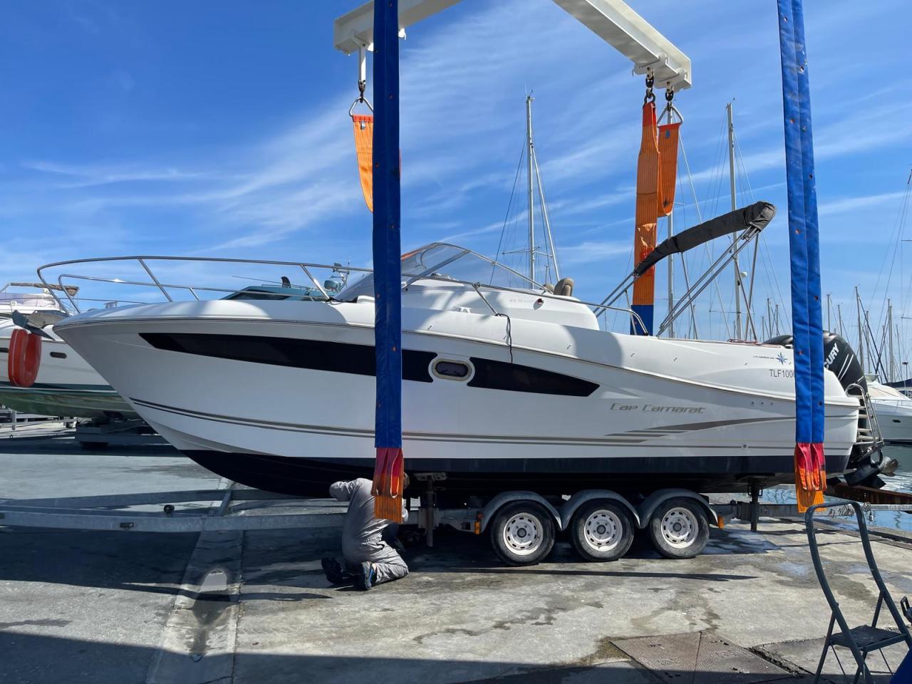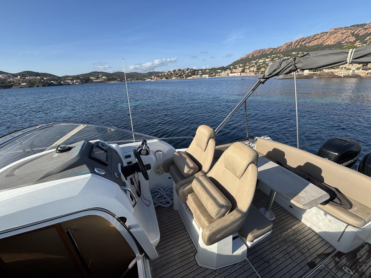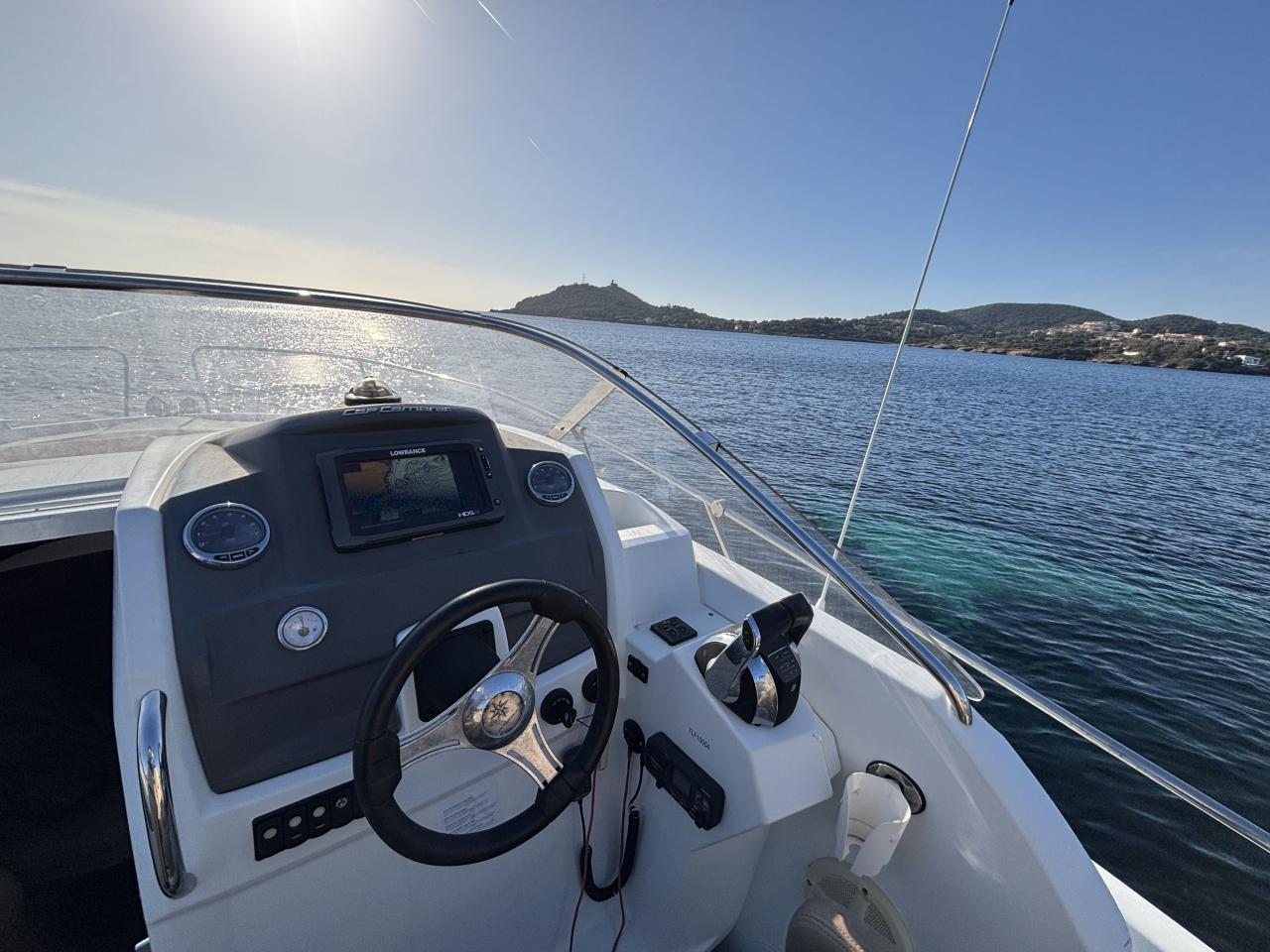2013 Cap Camarat 8.5 WA in very good overall condition. Powered by twin Mercury Verado 225 engines with only 311 and 312 engine hours. A high-performance, stable and versatile boat, ideal for day cruising as well as coastal trips. Well equipped with Lowrance HDS9 GPS, VHF, trim tabs, remote-controlled electric windlass, 220V shore power with inverter, interior refrigerator, water heater, deck shower and manual toilets. A renowned model for its comfort, seaworthiness and versatility.