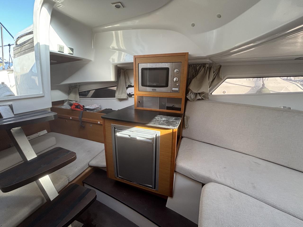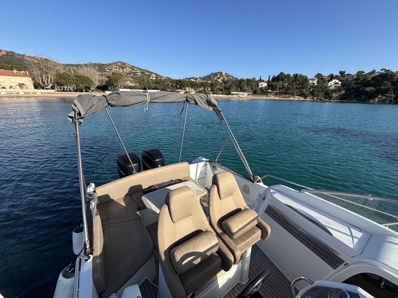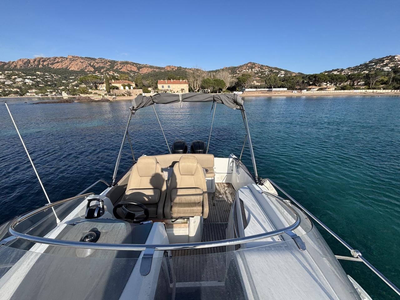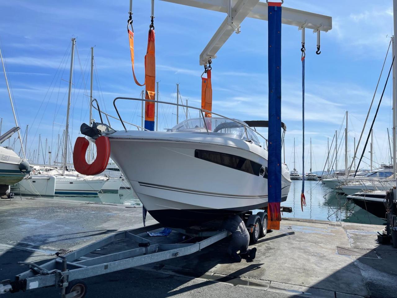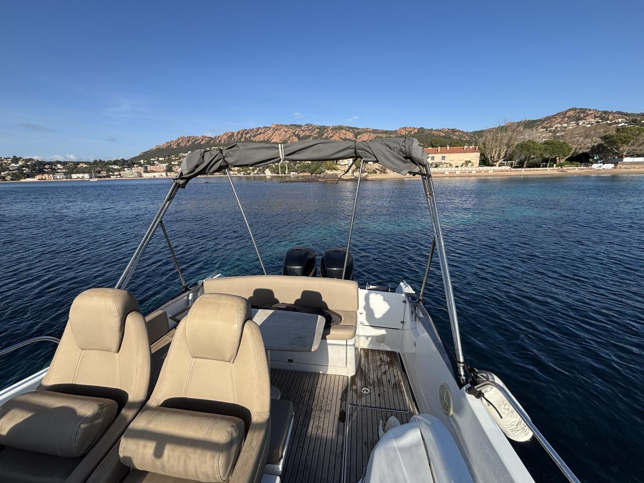 2013 Cap Camarat 8.5 WA in very good overall condition. Powered by twin Mercury Verado 225 engines with only 311 and 312 engine hours. A high-performance, stable and versatile boat, ideal for day cruising as well as coastal trips. Well equipped with Lowrance HDS9 GPS, VHF, trim tabs, remote-controlled electric windlass, 220V shore power with inverter, interior refrigerator, water heater, deck shower and manual toilets. A renowned model for its comfort, seaworthiness and versatility.