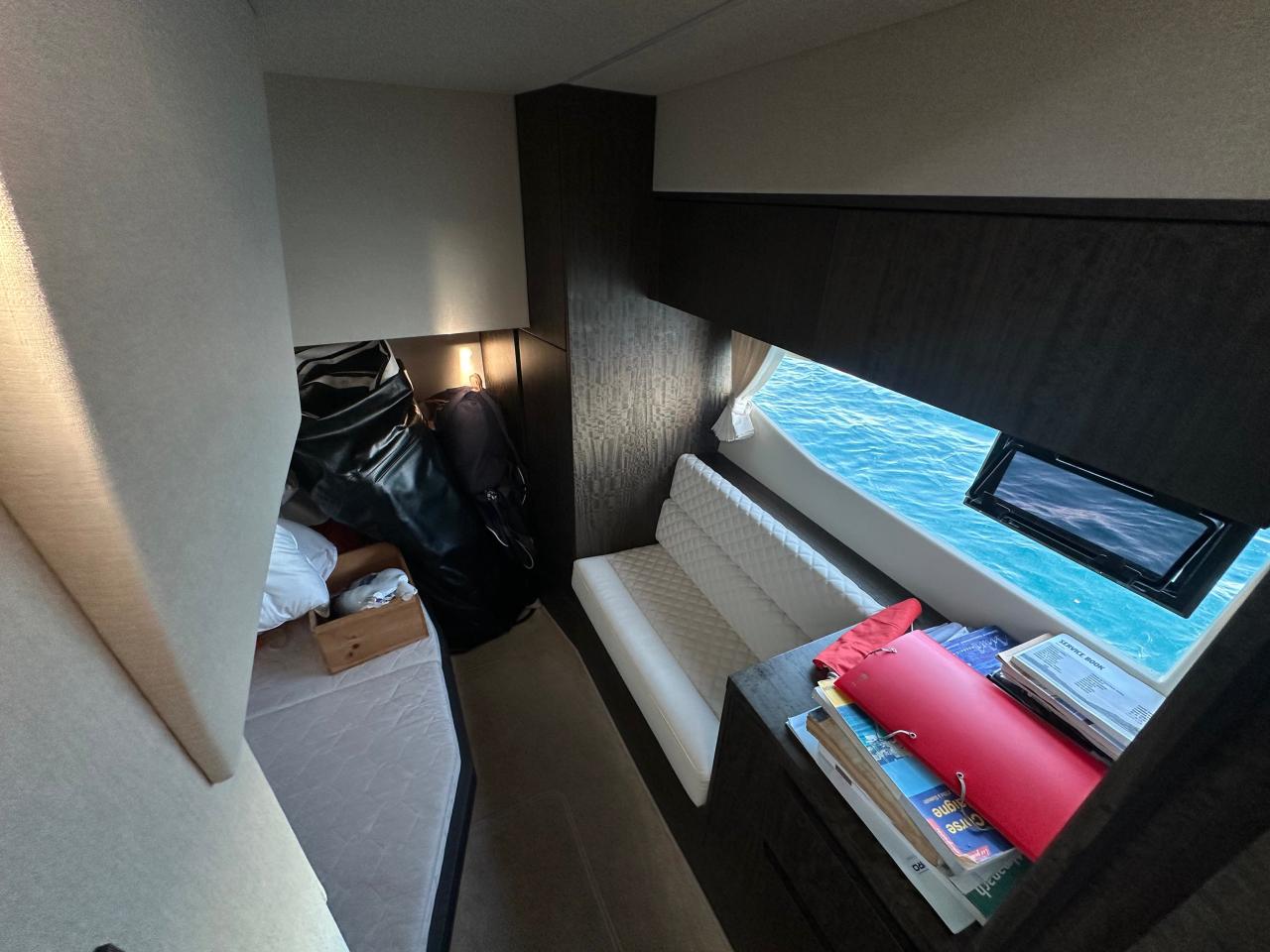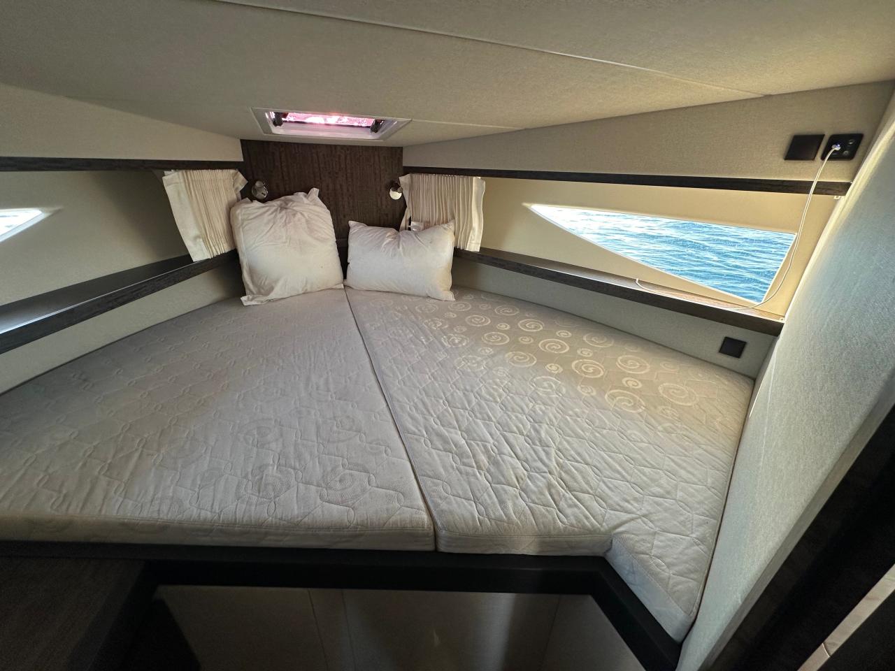 Power comes from twin Volvo Penta D4 diesel engines, 260 hp each, paired with Z-drive propulsion. The engines show approximately 300 hours only, which is low for this type of setup. This configuration delivers easy handling, comfortable cruising and strong performance, with a lively cruise speed and ample power reserve when required. Harbour manoeuvres are made significantly easier thanks to the bow thruster, a key feature for stress-free docking and tight marina situations.