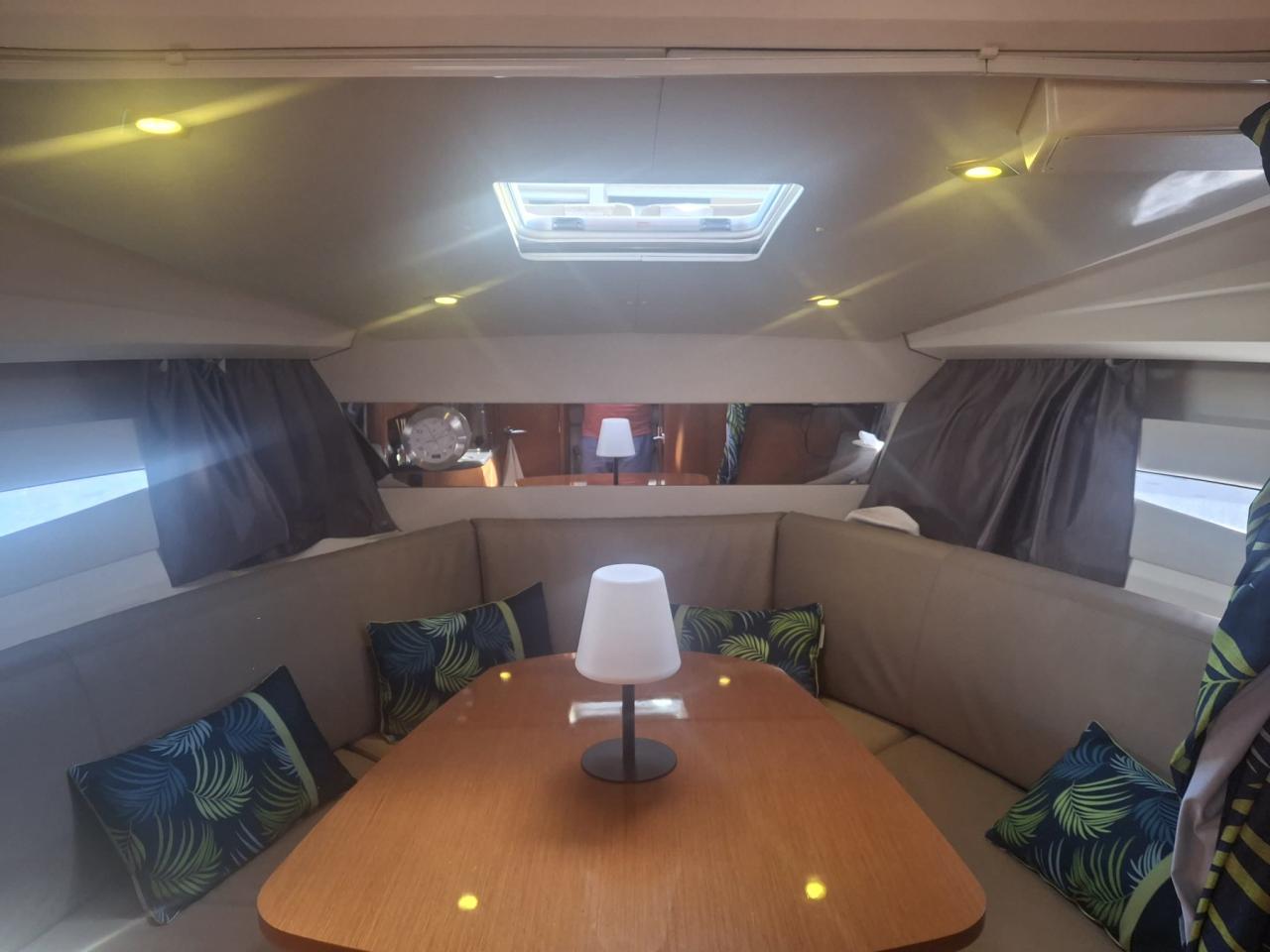 The Jeanneau Leader 8 is well known for its perfect balance between performance, comfort and build quality. This 2011 unit stands out thanks to its excellent overall condition and meticulous maintenance. It is powered by a Volvo Penta D4 260 hp diesel engine with only 485 hours, delivering strong torque, controlled fuel consumption and proven reliability.